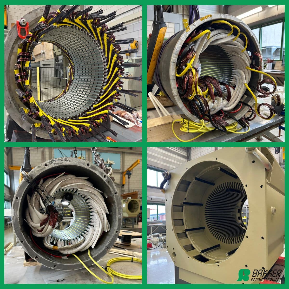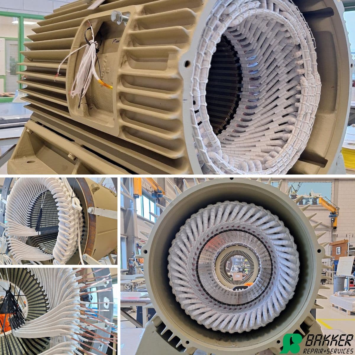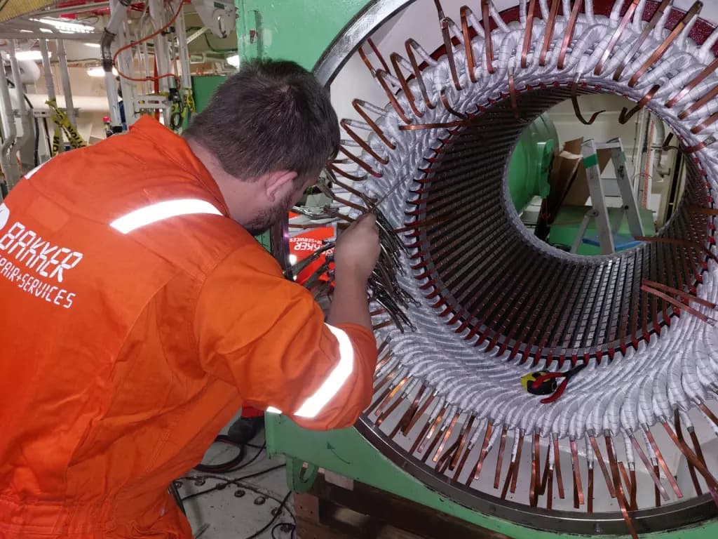 Bakker Repair + Services is a Netherlands-based electro-mechanical engineering company founded in 1975 and headquartered in Sliedrecht. The company specializes in the repair, maintenance, and overhaul of electric motors, generators, and transformers across low, medium, and high voltage systems. It operates a modern ~5,000–5,500 m² workshop with lifting capacity up to 100 tons and provides 24/7 worldwide on-site and workshop services for industries such as marine, offshore, wind, and industrial sectors.