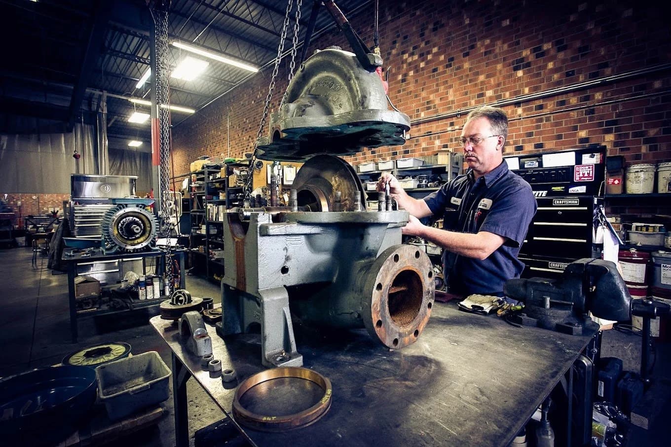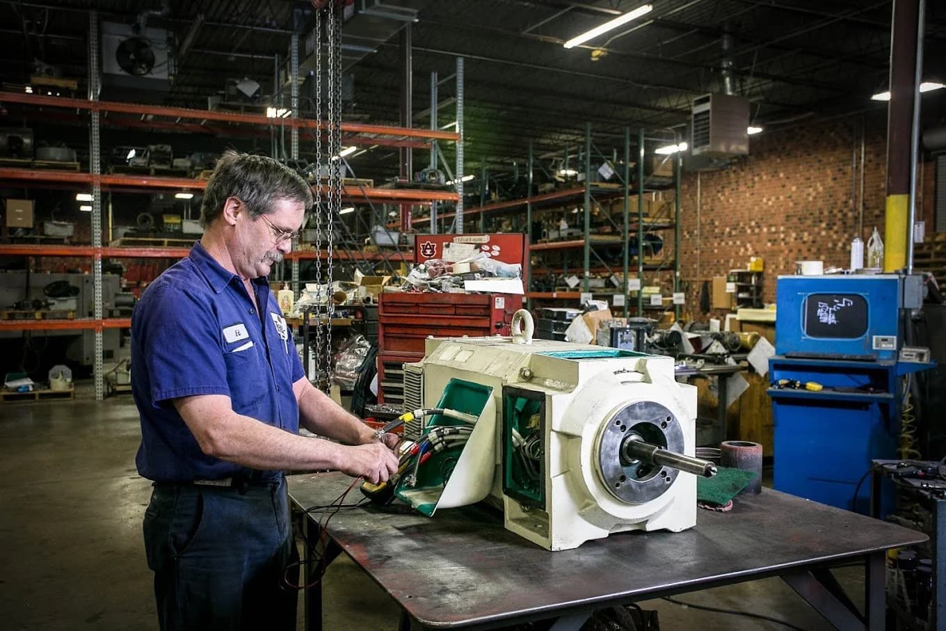 Industrial repair and service company specializing in servo motors, AC/DC motor repair, rewinding, pumps, gearboxes, and machine shop fabrication with 24/7 emergency support and EASA/UL-certified repair capabilities.